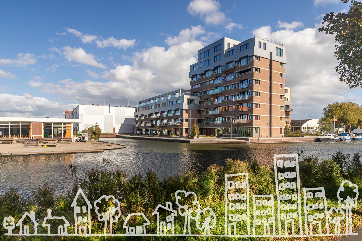 - Lichte woonkamer met grote raampartijen en uitzicht over de Trekvliet