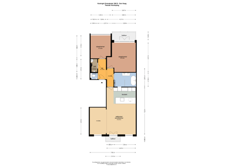 - 3 kamers (2 slaapkamers)