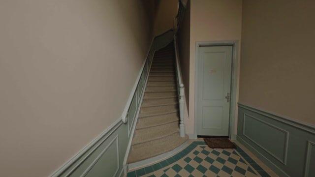 In de gang fluistert het blauw, bomen groeien uit het behang, verstrengeld met houtwerk dat in hun schaduw leeft.