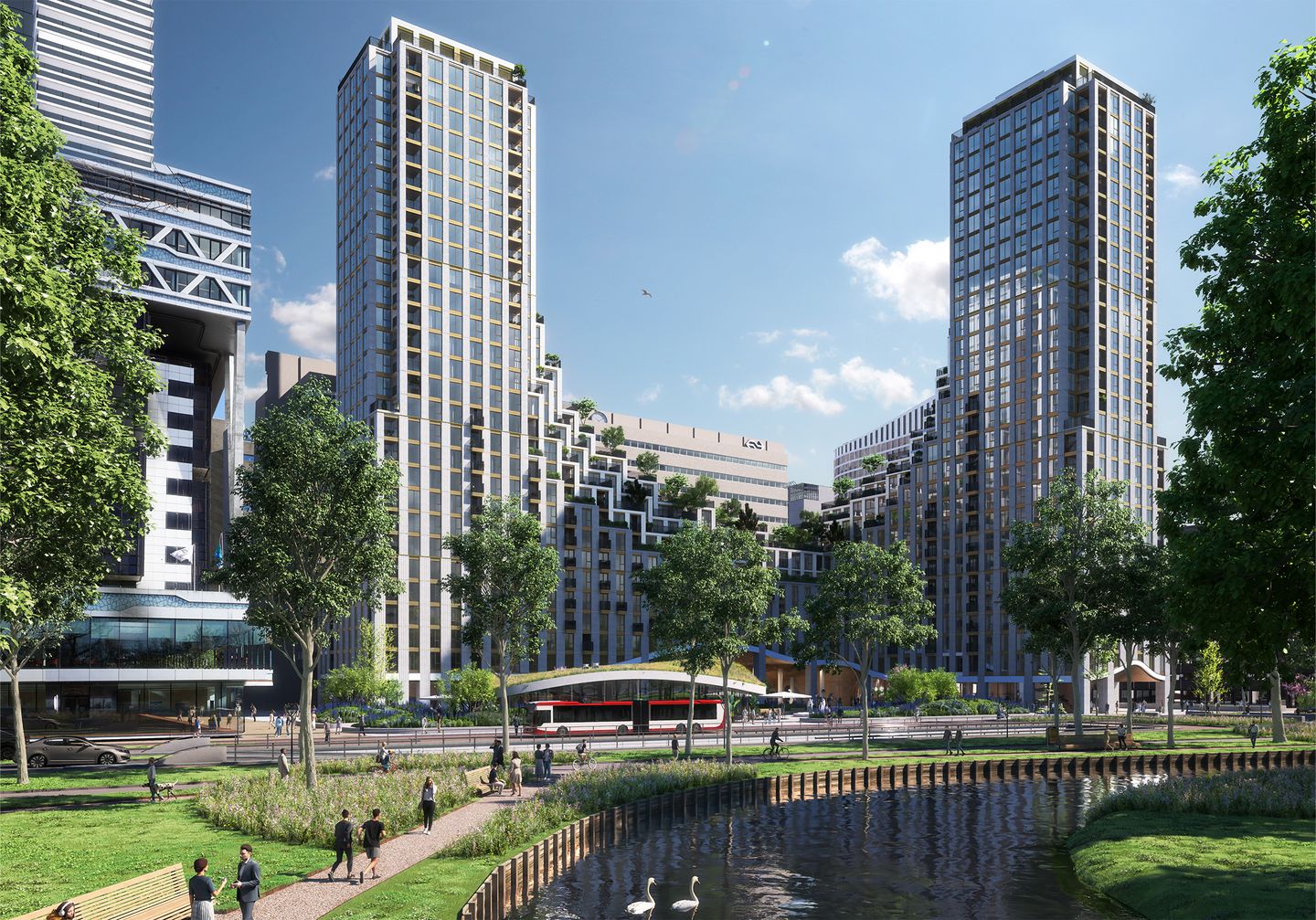 KJ heeft een breed scala aan appartementen in de ‘groene vallei’. Dit middelhoge deel van het gebouw verbindt de twee hoge torens van KJ. Hier beschikken de appartementen elk over een eigen dakterras/daktuin met ruimte voor veel groen. Daarnaast is er ook een gemeenschappelijke daktuin, uiteraard voor residents only. Het grootstedelijk leven krijgt hier een nieuwe dimensie. Met de groene daktuinen en -terrassen haalt KJ het groen van het park beneden naar uw woning toe.