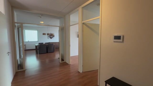 Bellen- en brievenbussen tableau, gezamenlijke afgesloten entree, lift naar 6e verdieping. Entree appartement. Bij binnenkomst valt meteen de ruime hal op, die toegang geeft tot alle vertrekken. De lichte en sfeervolle woonkamer staat in directe verbinding met de open, moderne keuken, voorzien van inbouwapparatuur en een strak werkblad. De schuifpui in de woonkamer geeft toegang tot het royale terras, waar je heerlijk kunt genieten van de zon en de rust, met uitzicht op de kade. Perfect voor een zomers ontbijt of een gezellige borrel.