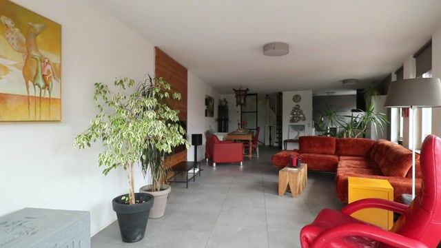 Entree op straatniveau, trap naar overloop op 1e etage, modern gastentoilet met fonteintje. Via stijlvolle openslaande deuren met zwartmetalen frame stap je de grote, lichte woonkamer binnen. Dankzij de hoekligging en de speelse ronding aan de voorzijde stroomt het daglicht royaal binnen.