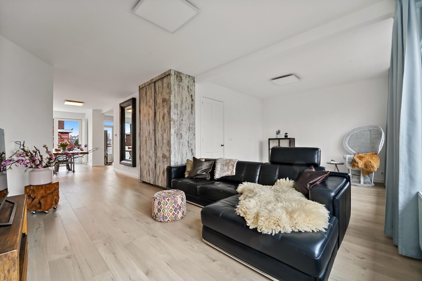 Layout: The Hague-style porch with stairs to the first floor. Entrance hall with meter cupboard. Stairs to the second floor. Entrance through a steel door. Hallway with built-in wardrobes and access to the beautiful kitchen/diner. The kitchen is fully equipped, including a modern gas cooktop, a Quooker, a dishwasher, an extractor hood, an oven, and a door to the balcony. The dining room is located at the rear of the house, with sliding doors leading to the balcony and a storage cupboard. The L-shaped living room is spacious and features a former en-suite bathroom, creating a playful layout with a through-the-floor feel. Large windows provide abundant natural light. Back in the hallway, you'll find a very spacious toilet. Stairs lead to the second floor. A very spacious landing leads to the generous bedroom with large dormer windows, offering the possibility of creating multiple bedrooms. Back in the hallway, you'll find a separate toilet, laundry room, and bathroom. A loft ladder provides access to the attic, which features skylights and ample storage space. The modern bathroom features a walk-in shower, vanity, and a heated towel rail.