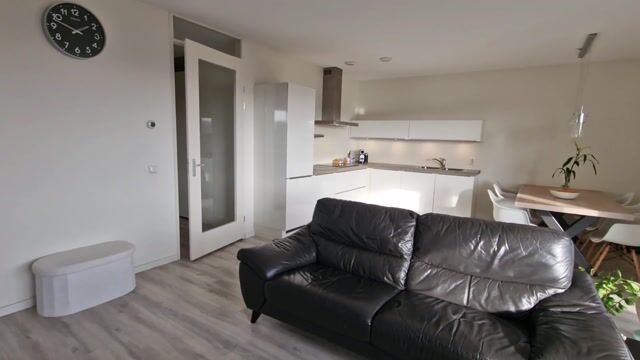 Het balkon is gelegen op het zuidoosten, waardoor u hier van tot laat in de middag van de zon geniet. De open keuken sluit naadloos aan op de leefruimte en is uitgevoerd met een inductiekookplaat met afzuigkap en een koel-vriescombinatie. Praktisch is de vaste opbergkast met daarin de aansluiting voor wasmachine en droger.