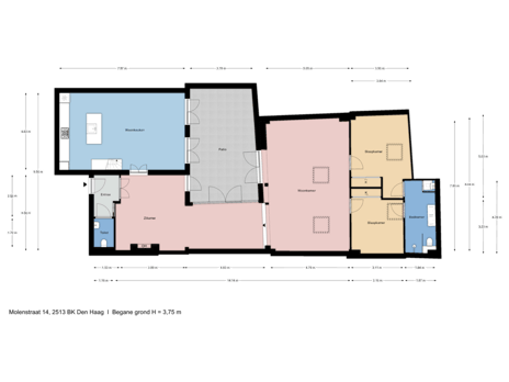 - 23 m² (6,00 meter diep en 3,78 meter breed)