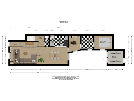 - 15 m² (6,48 meter diep en 2,25 meter breed)