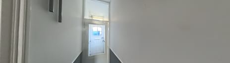 Entrance with vestibule, long hallway with spacious under-stairs cupboard containing the meter.