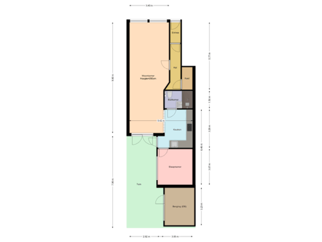 - 23 m² (7,90 meter diep en 2,92 meter breed)