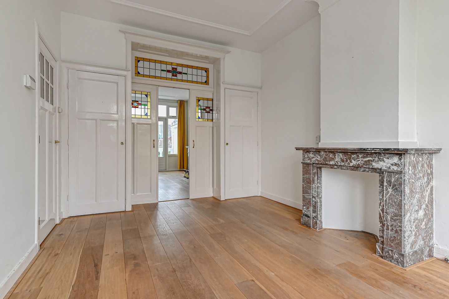 Open "Haags" portiek, entree appartement op de eerste verdieping, hal met meterkast, trap naar tweede verdieping, grote centrale overloop met toegang tot alle vertrekken en daklicht, separaat modern vrijhangend toilet met inbouwreservoir. Sfeervolle en bijzonder lichte woon-/eetkamer ensuite met schuifseparatie voorzien van vaste kasten en schuifdeuren met glas-in-lood, fraaie originele schouwen, glas-in-lood bovenlichten en mooie eiken vloer. Vanuit de achterkamer openslaande deuren naar het zonnige balkon (zuidwesten) op de middag- en avondzon en gaaf vrij uitzicht op de nieuwe Haagse skyline. Ruime moderne keuken voorzien van hardstenen blad, diverse inbouwapparatuur (koelkast, vriezer, vaatwasser, oven, inductie kookplaat en afzuigkap) en wasmachine aansluiting. Vanuit de keuken tevens toegang naar het balkon. De twee lichte slaapkamers bevinden zich aan de voorzijde van het appartement en bieden uitzicht richting het Stuyvesantplein. Nette badkamer met douche en vaste wastafel in meubel.