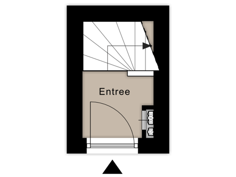 Open portiek naar 1e verdieping, entree woning/tochtportaal met bergruimte en groepenkast. Trap naar woonverdieping, centrale gang met toegang tot alle ruimtes.