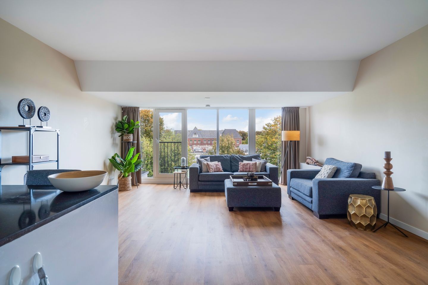 Je betreedt het gebouw via een statige entree met hoge plafonds, een verzorgde hal en toegang tot zowel het trappenhuis als de lift. Bij binnenkomst betreed je de centrale hal met toegang tot alle vertrekken. Direct naast de entree bevindt zich een modern separaat toilet. Aan de voorzijde van de woning ligt de ruime en lichte woonkamer. Grote raampartijen zorgen hier voor veel daglicht en een prettig uitzicht. Dankzij de ligging op de bovenste verdieping en aan de rustige achterzijde geniet je hier van optimale rust en privacy. Grenzend aan de woonkamer bevindt zich de moderne open keuken. Deze is luxe uitgevoerd en voorzien van Whirlpool inbouwapparatuur: een koel-/vriescombinatie, inductiekookplaat, afzuigkap, combimagnetron/oven en vaatwasser. De keuken biedt veel werk- en kastruimte en is zo ontworpen dat koken en gezellig samen zijn naadloos in elkaar overlopen. Aan de achterzijde van het appartement ligt de slaapkamer, die voldoende ruimte biedt voor een tweepersoonsbed en kastruimte. Vanuit de slaapkamer is er direct toegang tot het balkon van ca. 10,7 m², waar je rustig buiten kunt zitten. De badkamer, eveneens bereikbaar vanuit de hal, is luxe afgewerkt met een ruime inloopdouche voorzien van glazen schuifwand en regendouche, een strak wastafelmeubel met spiegelkast en een designradiator. Het gehele appartement is voorzien van comfortabele vloerverwarming en beschikt over mechanische ventilatie. Daarnaast bestaat de mogelijkheid om een airco te plaatsen.