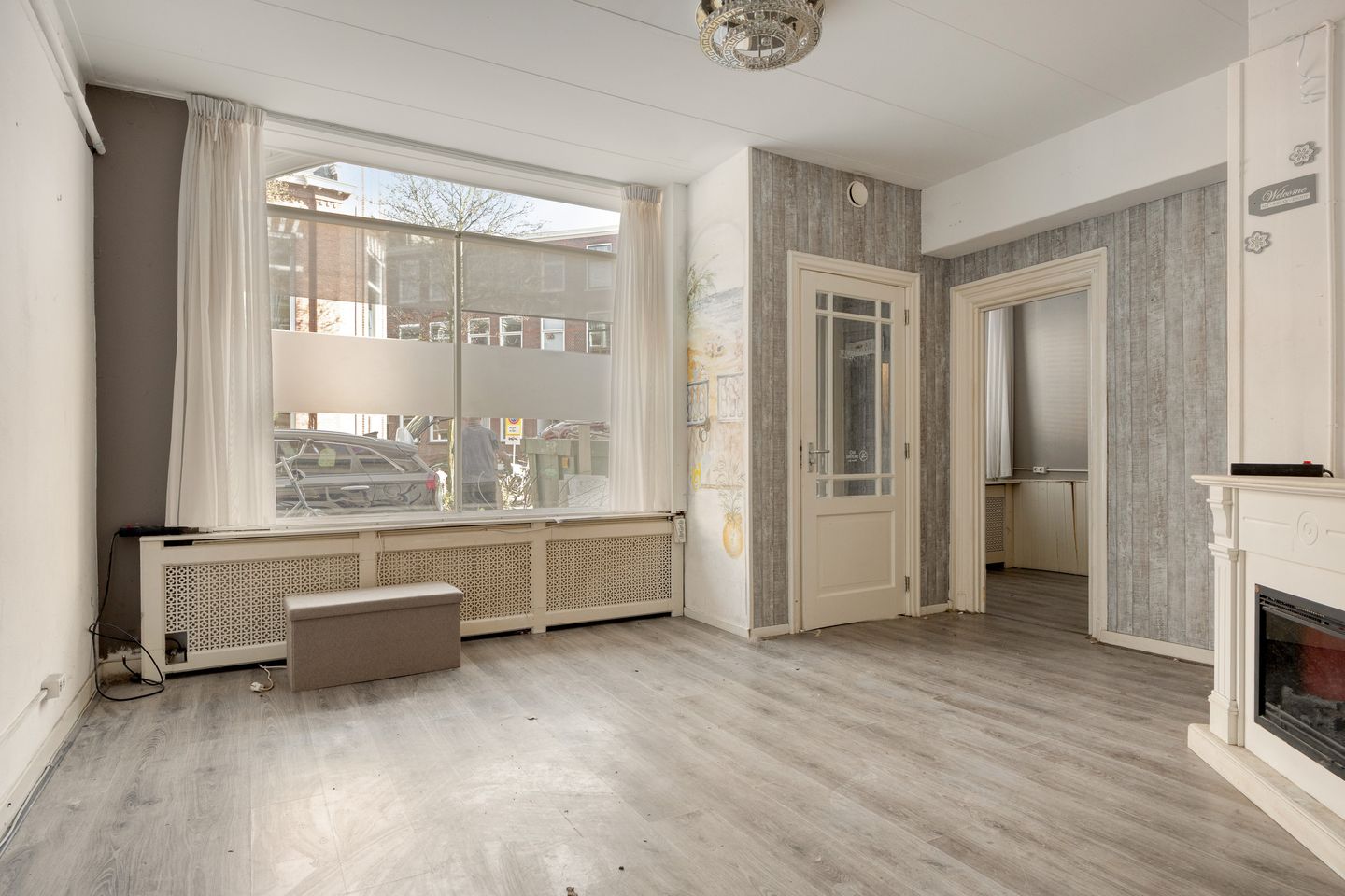 De woonkamer is voorzien van een laminaatvloer en beschikt over een houten kozijn met enkel glas. Slaapkamer I, gelegen aan de achterzijde van de woning, is afgewerkt met een laminaatvloer en glad gestucte wanden en plafond.