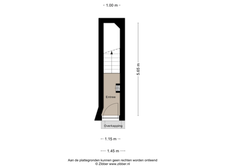 Entree op straatniveau, gevolgd door de trap naar de woonverdieping. De ruime overloop biedt toegang tot het separate toilet en de trapopgang naar de tweede verdieping.