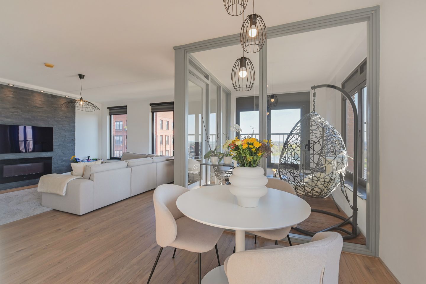 Above the 't Hoge Veen shopping center (so all your daily shopping needs are within easy reach), this beautiful and modern 3-room apartment with indoor loggia/conservatory is located on the sixth floor. This property has an attractive living room of approximately 37m2, a modern corner kitchen with built-in appliances, two bedrooms, a bright bathroom and toilet, and a private storage room and parking space in the basement. The property is located in a very well-maintained and secure apartment complex with a beautiful main entrance and enclosed entrance and parking garage.