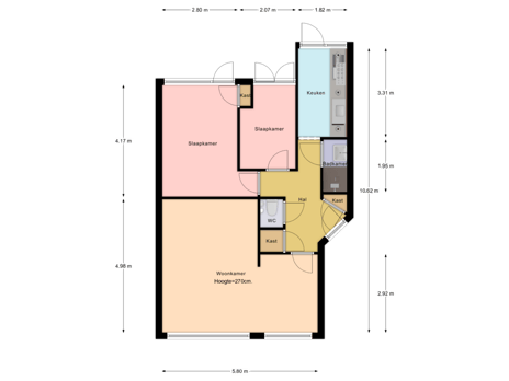 - 59 m² (8,06 meter diep en 7,32 meter breed)