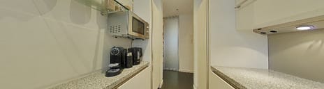 At the side of the apartment is a beautiful, well-maintained, modern kitchen. Adjacent is the very spacious bedroom with fitted wardrobes.