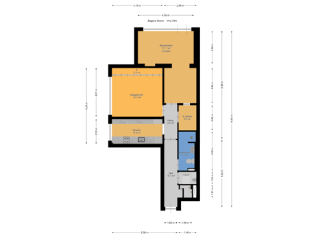 - 19 m² (3,92 meter diep en 4,80 meter breed)