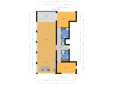 - 13 m² (2,50 meter diep en 5,27 meter breed)