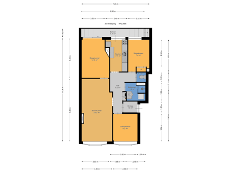 De keuken ligt aan de achterzijde en biedt toegang tot het balkon, waar je uitkijkt over de buurt. Er zijn drie slaapkamers: een royale hoofdslaapkamer, een tweede slaapkamer met toegang tot het balkon en een derde (compactere) kamer, ideaal als werk- of kinderkamer.