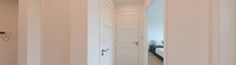 Entry into the apartment via a hallway with meter cupboard, built-in closet with washing machine connection, and boiler