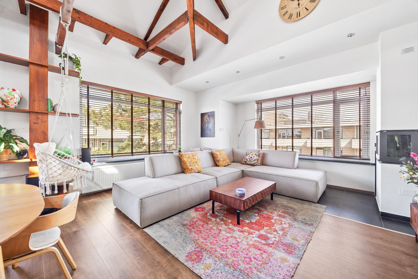 Bij binnenkomst valt direct de lichte, open leefruimte op. De woonkamer met vide creëert een indrukwekkend gevoel van ruimte en geeft de woning een moderne loft-uitstraling, terwijl de karakteristieke elementen behouden zijn gebleven.