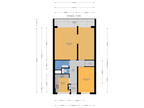 Ruim balkon (ca. 6.51 x 1.15m) gunstig gelegen op de middag- en avondzon.