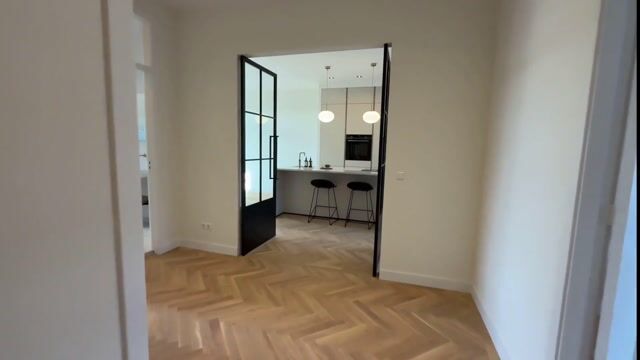 Beautiful, fully (and very exclusively) renovated 3-room apartment with a south-facing balcony and perpetually redeemed ground lease — unique in this street. This completely refurbished home has been transformed using only high-quality materials. The apartment features a beautiful oak herringbone parquet floor finished with sleek skirting boards. The walls are elegantly plastered, and the ceilings are equipped with stylish recessed lighting. In addition, there is a luxurious open kitchen with premium built-in appliances and a modern bathroom with a lovely freestanding bathtub and walk-in shower. The combination of modern design with classic elements gives this apartment a serene and comfortable atmosphere.