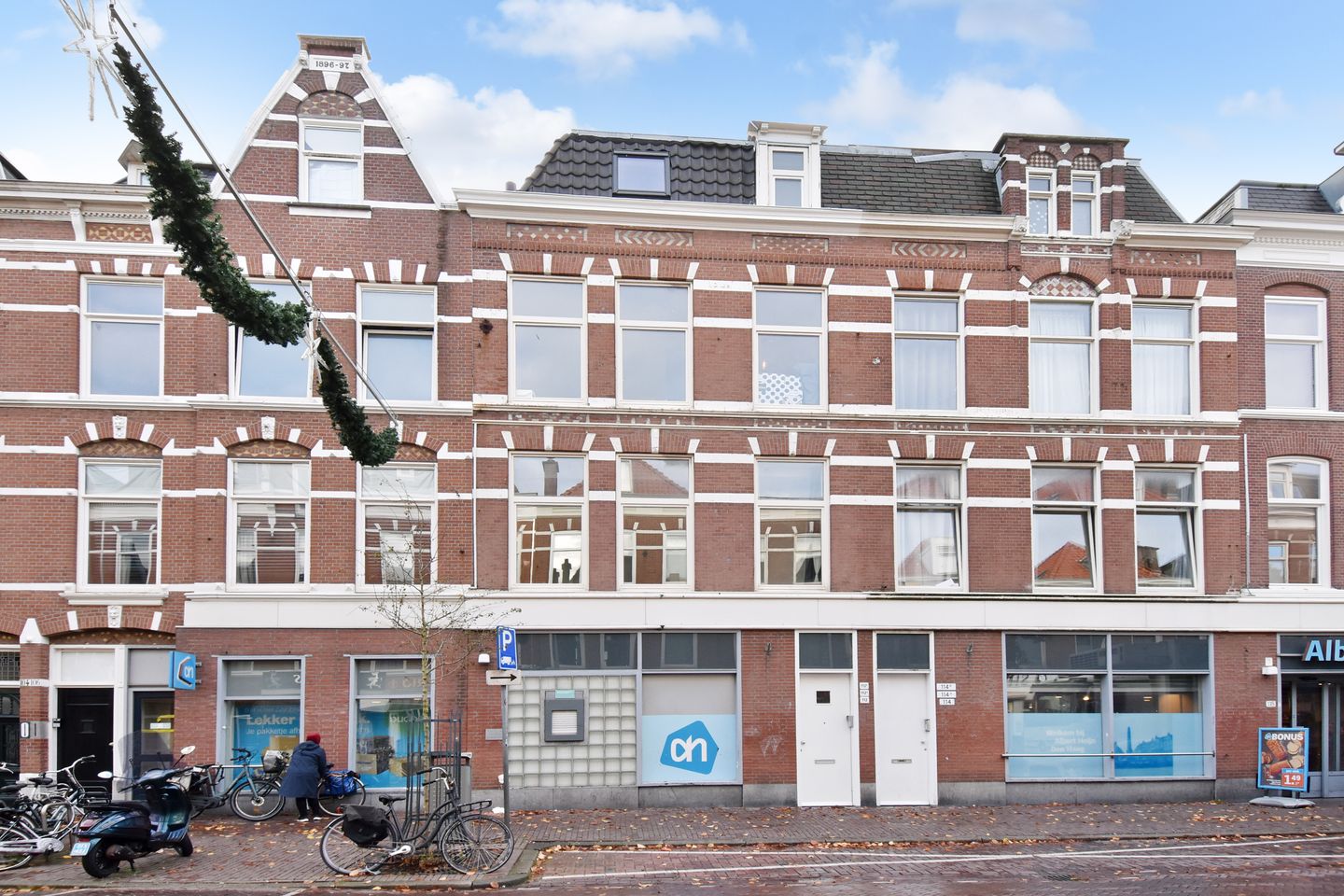 The apartment is located above the Albert Heijn supermarket in the heart of the lively Weimarstraat in the Regentessekwartier district.
