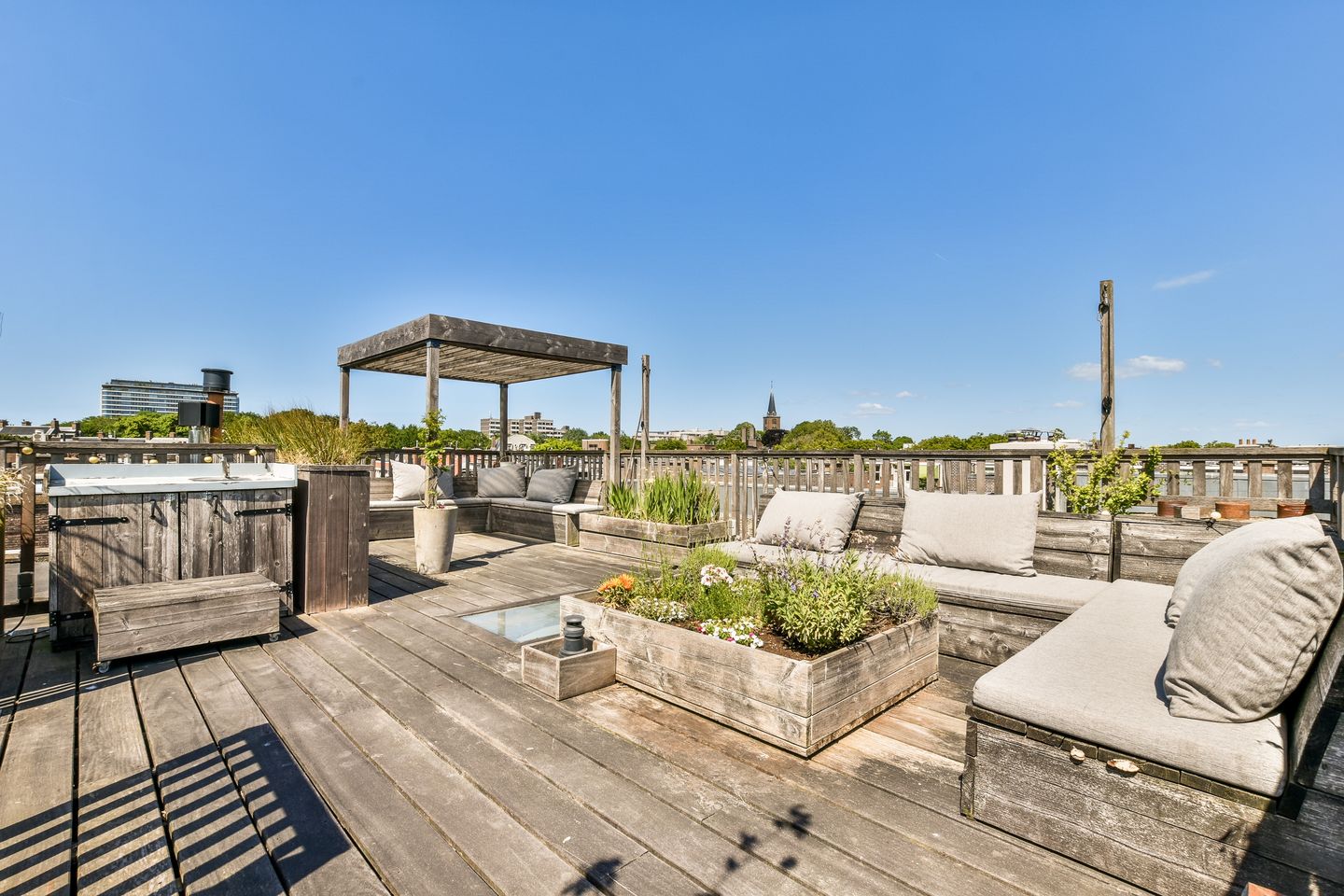 A fixed staircase leads you to the spacious roof terrace of approximately 57 m², your own panoramic lounge with a breathtaking view over The Hague's skyline. Here you can experience every sunrise and sunset in style.