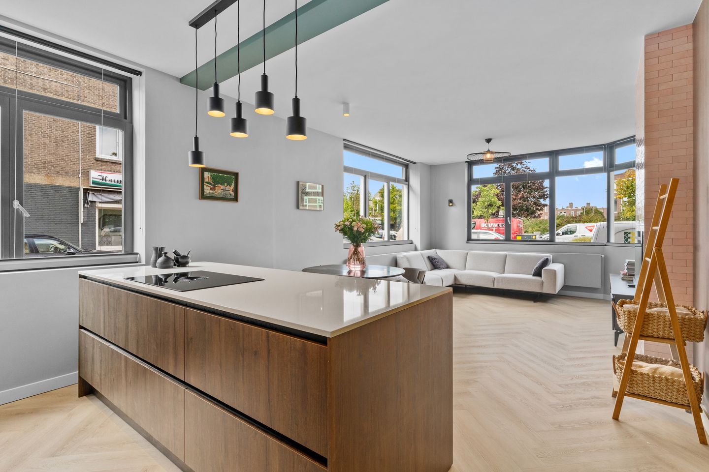 Natural light is one of the apartment's strongest assets. Its corner location and large windows create a bright and inviting atmosphere all year round. The open kitchen is equipped with high-quality appliances, including a Quooker, a 46-bottle wine refrigerator, a Bora cooking system, and ample cupboard space. The home has a functional laundry room with connections for a washing machine and dryer. Storage space is never a problem thanks to the custom-made cupboards, practical pantry, and very spacious basement, which is easily accessible. The bathroom adds comfort and luxury with a spacious bathtub, rain shower, and underfloor heating. The lovely backyard has its own separate and spacious access to the street. This practical and pleasant backyard was completely renovated in 2024 with new paving and drainage. Its south-facing location offers plenty of sun in the summer months. The garden offers privacy and is a great place for social gatherings and quiet moments.