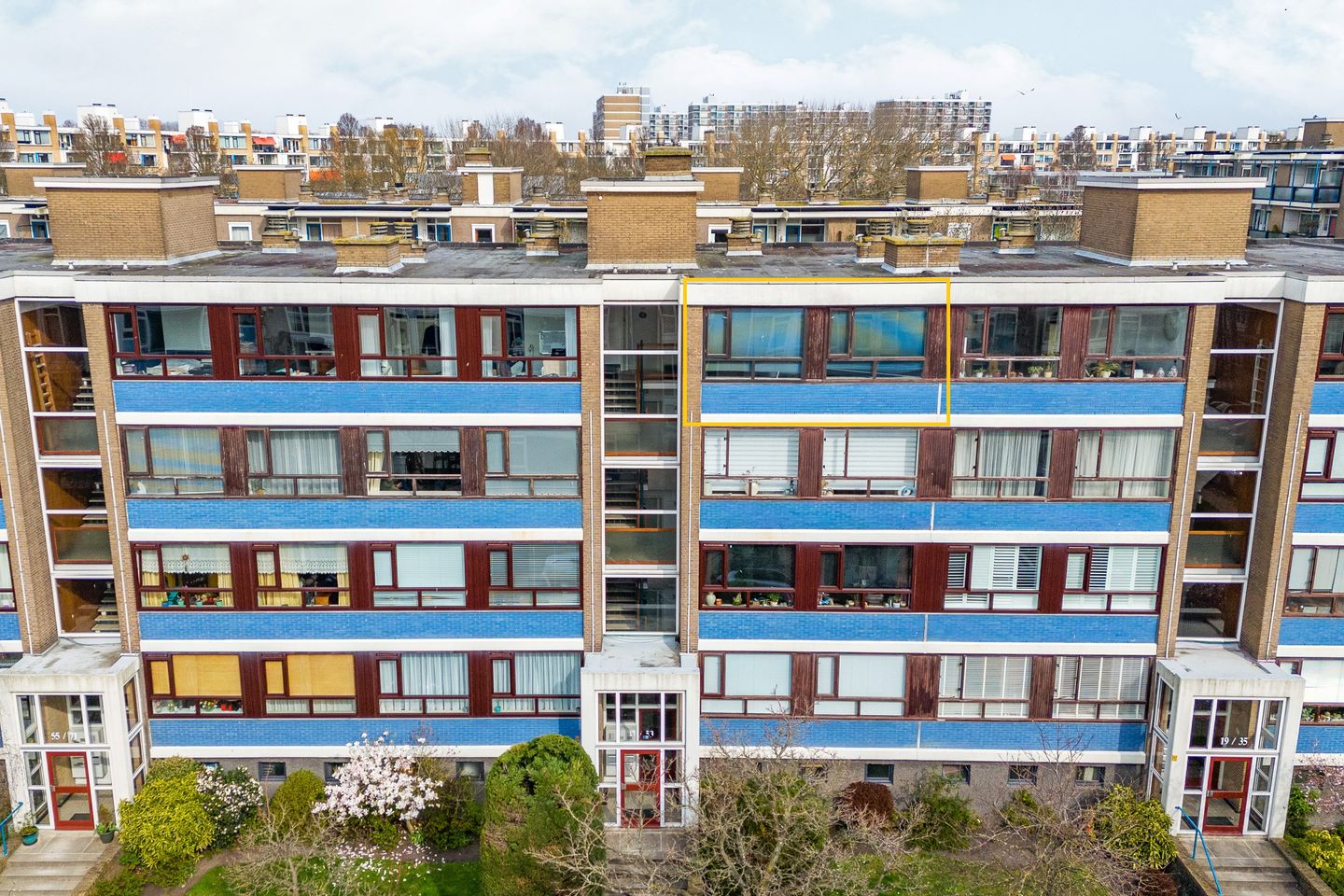 Afgesloten portiek met brievenbussen en bellentableau. De woning is bereikbaar via het trappenhuis of lift (vanaf de eerste verdieping).