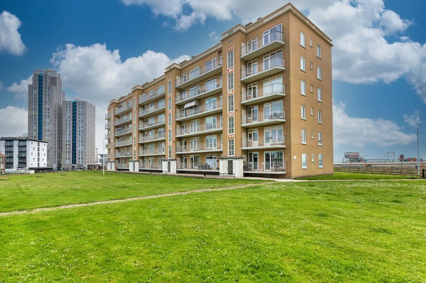 Na binnenkomst via de nette centrale entree stap je het appartement binnen in de hal, die toegang geeft tot vrijwel alle vertrekken. Vanuit hier bereik je de ruime en lichte woonkamer met vrij uitzicht op de boulevard en de zee.
