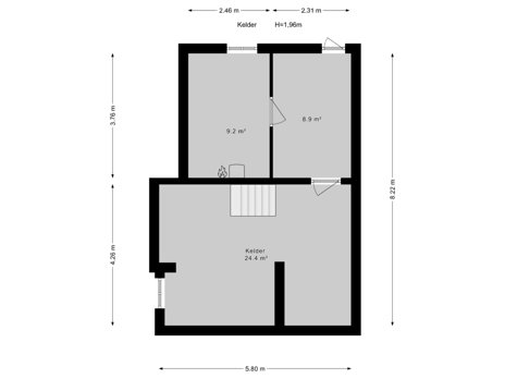 toegang tot ruime kelder (ca. 44 m2) verdeeld over meerdere vertrekken met cv-opstelplaats