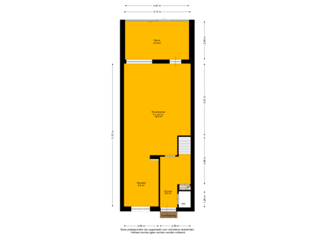 - 69 m² (11,98 meter diep en 5,77 meter breed)