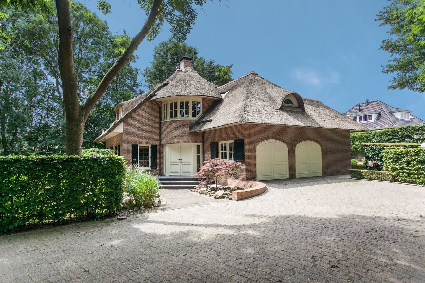 Op een unieke locatie aan een brede, boomrijke laan in de gewilde villawijk "Bosweide" staat deze prachtige vrijstaande villa met energielabel A, een imposante rieten kap, ontworpen door het gerenommeerde architectenbureau Van der Padt & Partners.