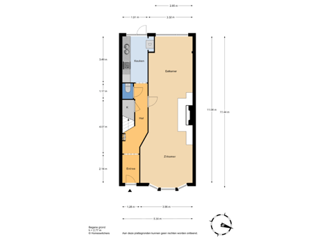 - 46 m² (8,00 meter diep en 5,80 meter breed)
