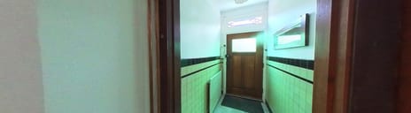 hallway with storage cupboard with stairs to the cellar (partially excavated) and simple toilet