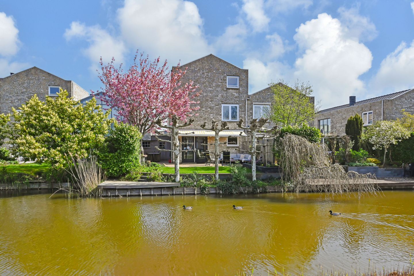 De achtertuin is gunstig gelegen op het zuidwesten en grenst direct aan het water. Hierdoor is er sprake van een prettige bezonning gedurende de hele dag.