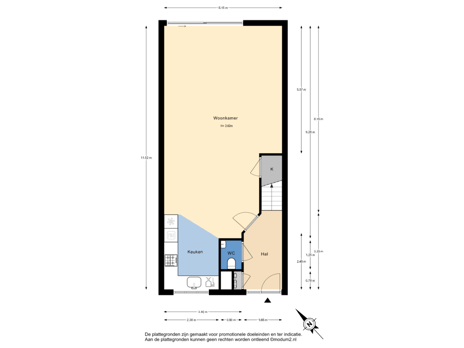 - 74 m² (14,00 meter diep en 5,30 meter breed)
