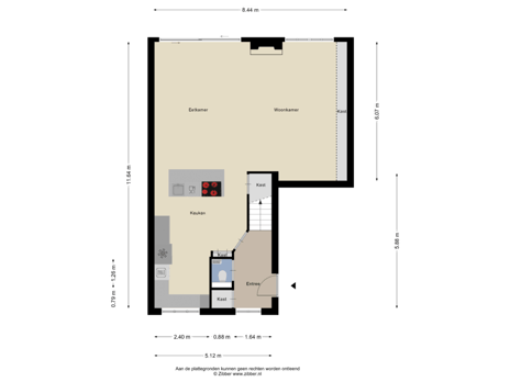 90 m² (10,00 meter diep en 9,00 meter breed)