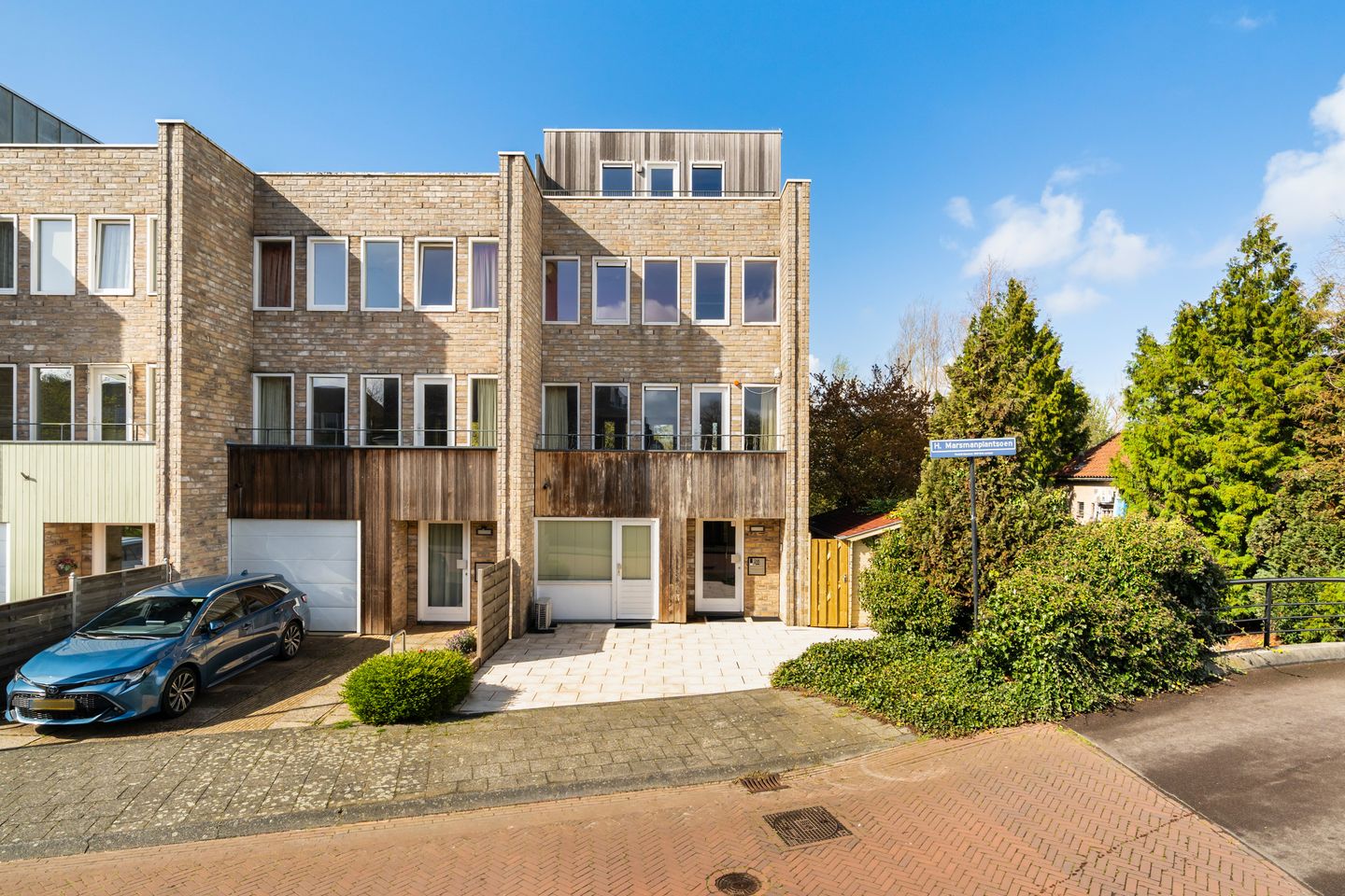 - Voortuin met oprit met parkeergelegenheid en toegang tot zowel de woning als de zijtuin;