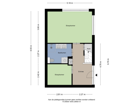 - 18 m² (3,55 meter diep en 5,15 meter breed)