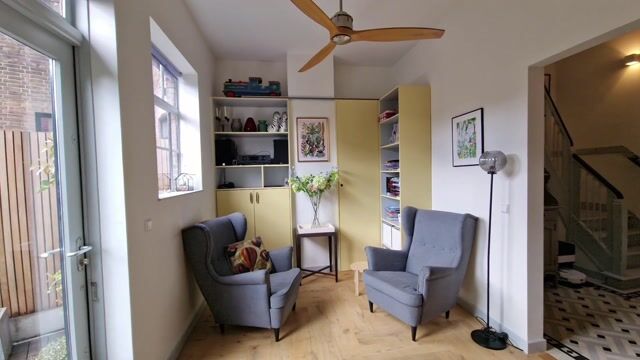 Een aparte kamer is er op de begane grond, handig als speelkamer, muziekkamer of thuiswerkplek. Maar kan ook dienen als 2e zitkamer.