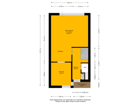 - 57 m² (7,70 meter diep en 7,40 meter breed)