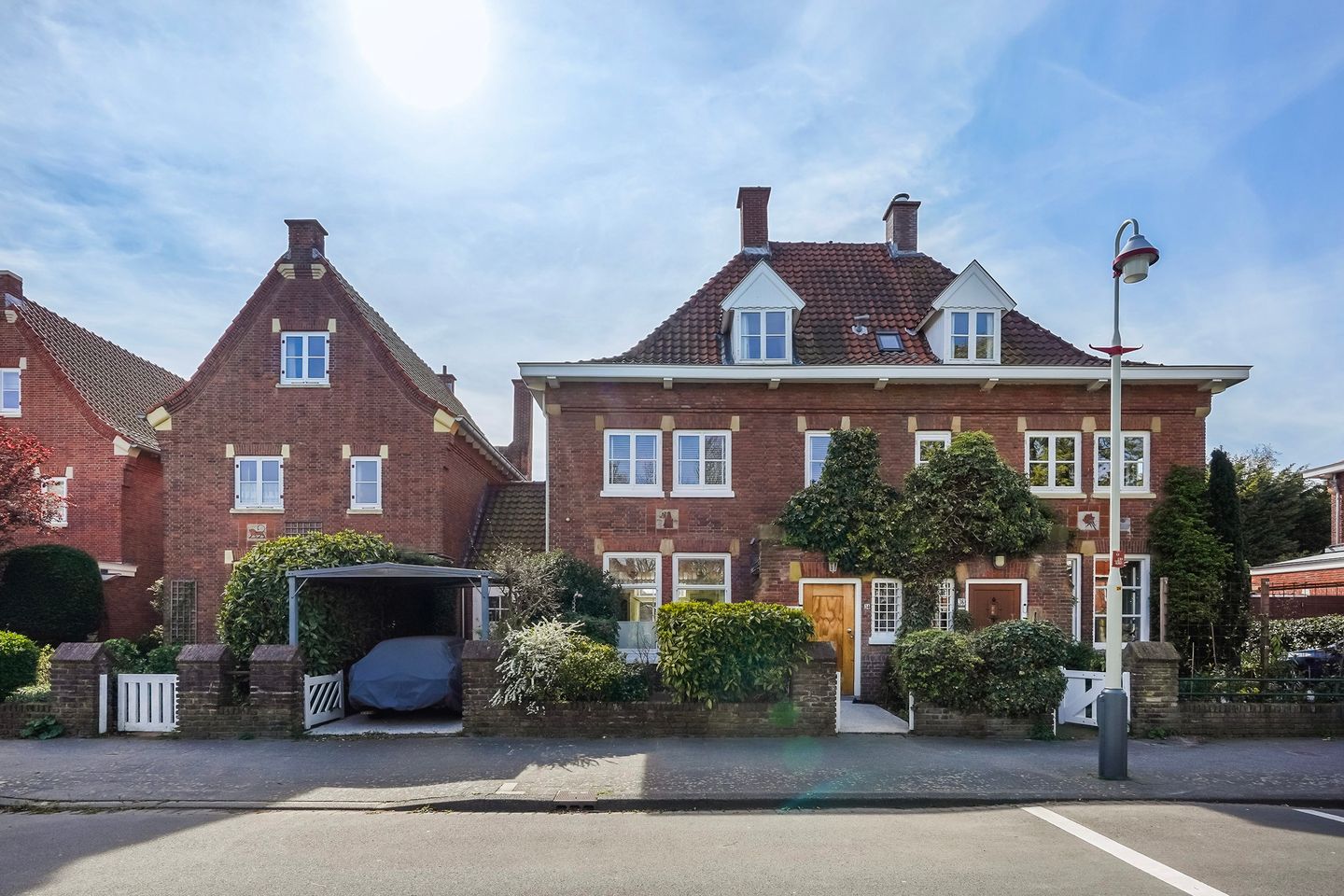 Charming and uniquely extended semi-detached house designed by architect A.J. Kropholler, in very good condition, featuring a spacious living room with eat-in kitchen in the extension, 4/5 bedrooms, 2 bathrooms, a front garden with private driveway, a storage shed, and a beautifully landscaped and sunny southwest-facing rear garden.