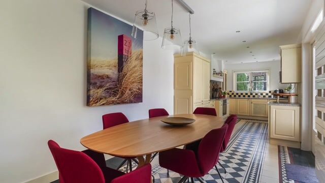 Vanuit de achterkamer toegang tot de fraaie aangebouwde (in stijl van het huis) en op maat gemaakte woonkeuken voorzien van een fraaie vloertegel met vloerverwarming, hardstenen aanrechtblad, inductiekookplaat, oven, 2 koel-/vriescombinaties en vaatwasser.