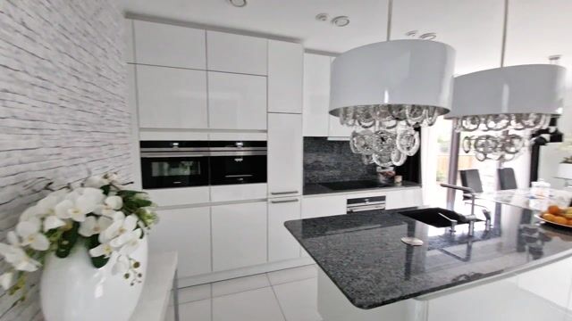 Via de entree stap je binnen in de hal. Hier vind je een luxe, volledig betegeld toilet met fonteintje, de meterkast en een technische ruimte met warmtepomp, WTW-installatie en praktische bergruimte. Vanuit de hal loop je direct door naar de open keuken. De keuken is strak uitgevoerd en ingericht met een kookeiland en Siemens inbouwapparatuur: een combi-oven/magnetron, aparte oven, 5-pits inductiekookplaat, vaatwasser, koel-/vriescombinatie en een kokend waterkraan. Een fijne plek om te koken en samen te komen. Aansluitend ligt de lichte woon- en eetkamer. Dankzij de grote raampartijen valt er veel daglicht naar binnen en heb je mooi zicht op de tuin rondom de woning. De ruimte is ruim opgezet en flexibel in te delen. De unieke steektrap vormt een echte blikvanger in de woonkamer en brengt je naar de verdieping.