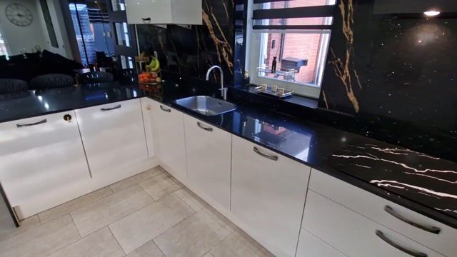 Vanuit hier loop je door naar de ruime L-vormige woonkamer met open woonkeuken en zijuitbouw. De gehele begane grond is voorzien van vloerverwarming. De keuken is ingericht met een inductiekookplaat met afzuigkap, combi oven/magnetron, een extra oven, vaatwasser en veel kastruimte. Aan de bar is plek om ’s ochtends rustig te ontbijten.