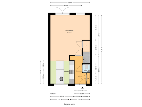 - 62 m² (10,32 meter diep en 5,96 meter breed)