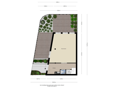 - 46 m² (13,76 meter diep en 3,37 meter breed)